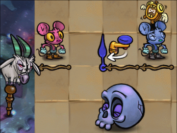 Get the golden alarm clock to wake up the sleeping face of death, who guards your escape hole. To do this you will have to do work together with your former selves, turning the hands of time to find a path through.